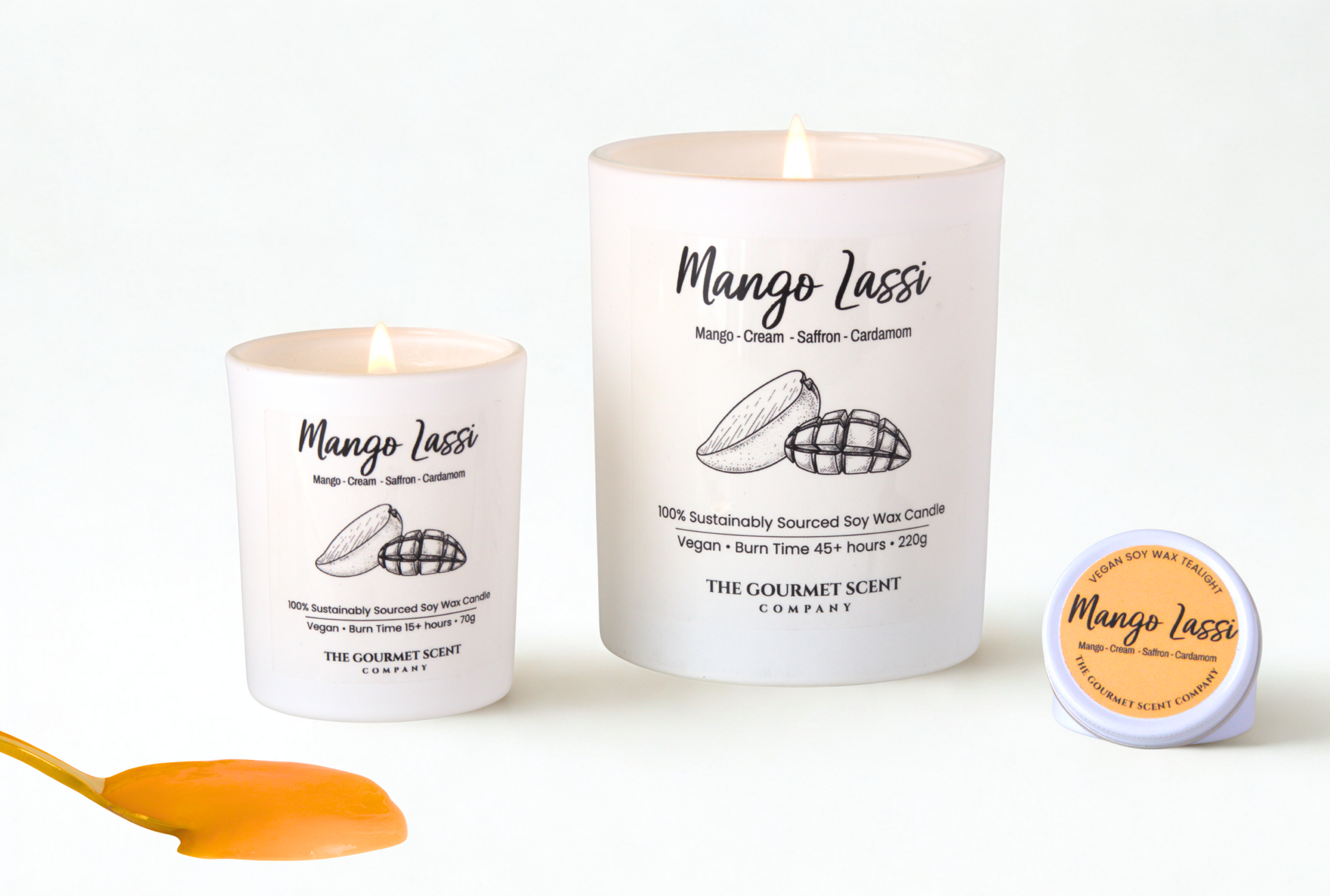 Mango Lassi: Ripe mango, vanilla, saffron, and cardamom—sweet, smooth, and delicately spiced.