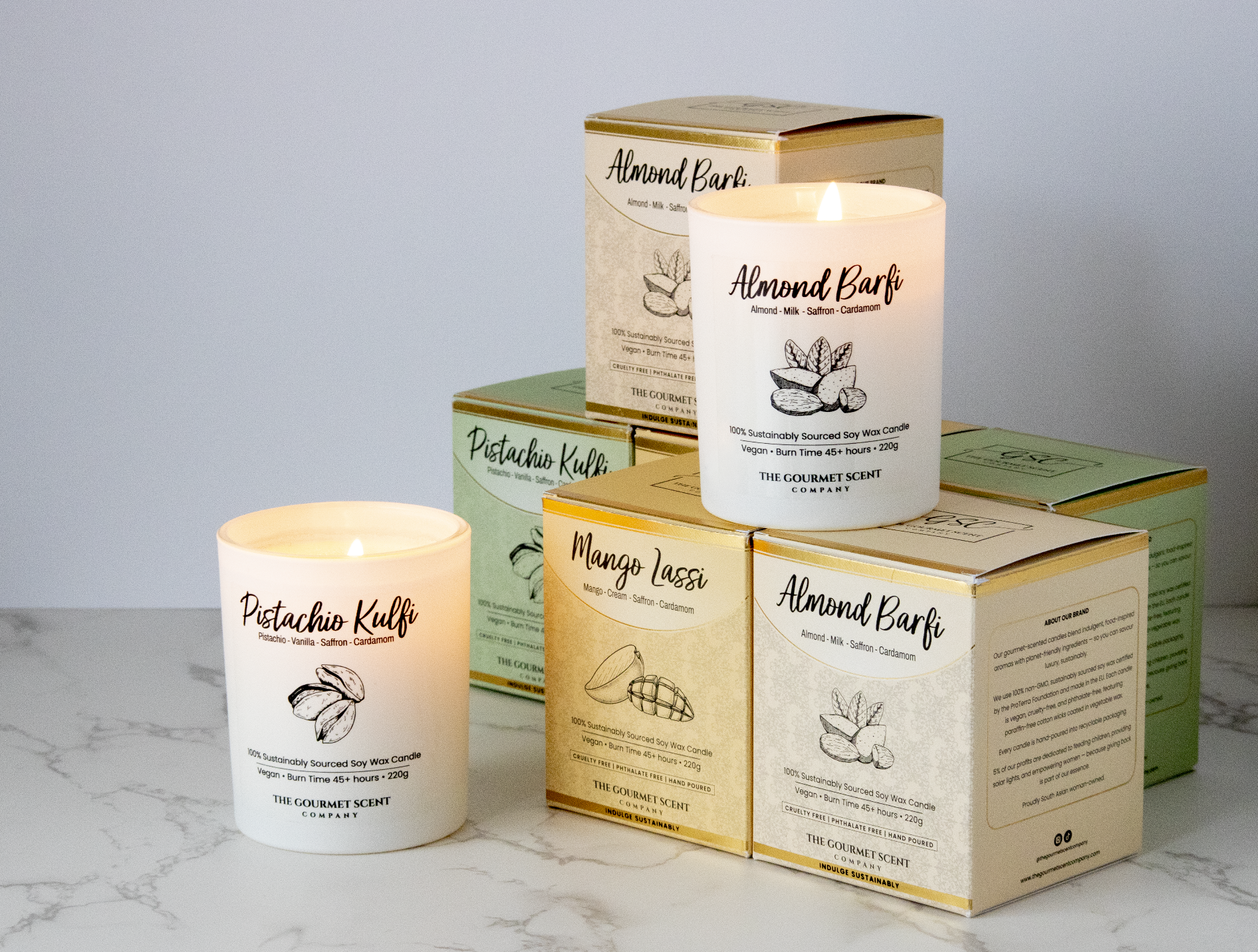 Our gourmet-scented candles blend indulgent, food-inspired aromas with planet-friendly ingredients — so you can savour luxury, sustainably.